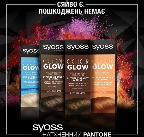 Тонирующий бальзам SYOSS, не содержащий аммиак и не повреждающий волосы, для интенсивного и яркого цвета.