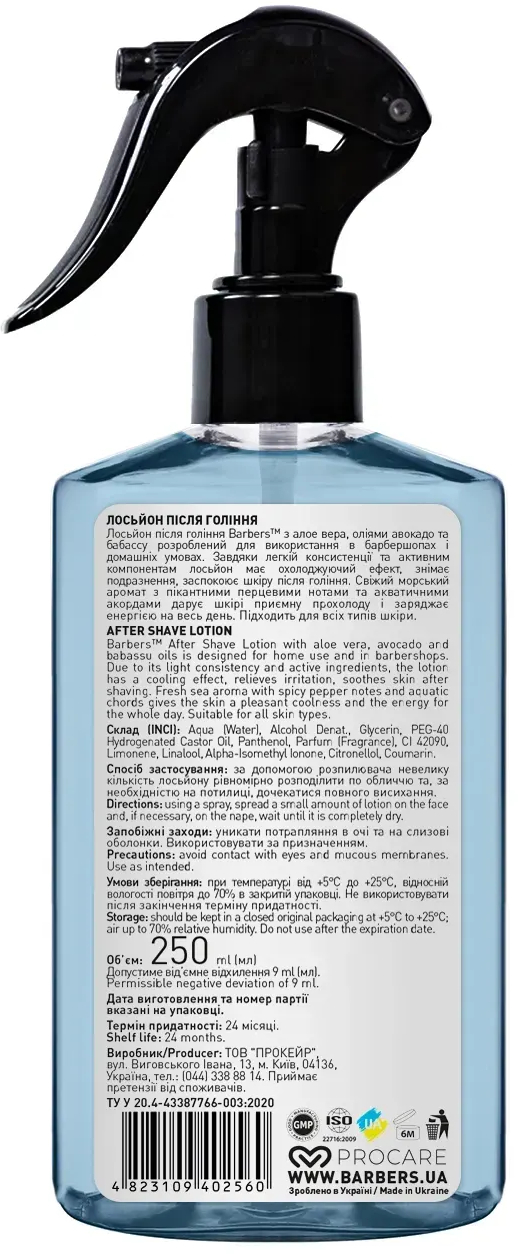 - Тонизирующий лосьон после бритья Barbers Dublin 250 мл
