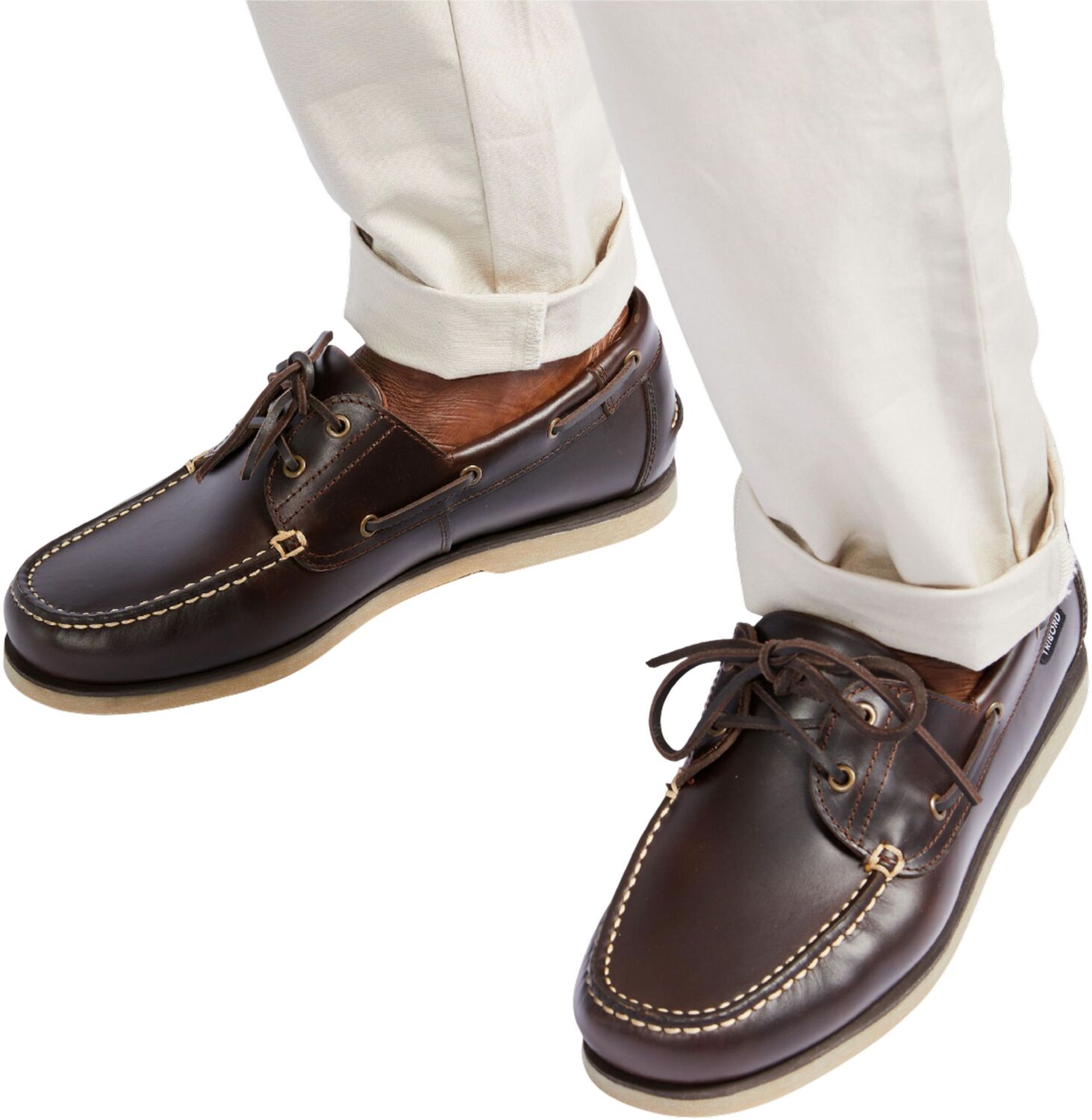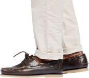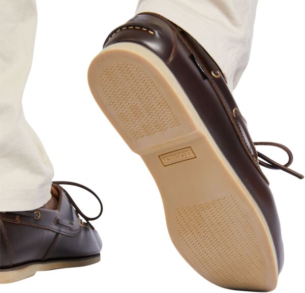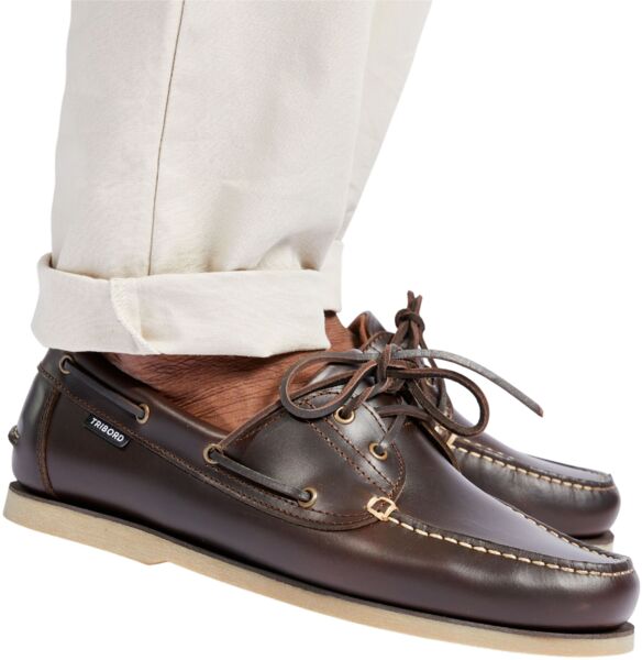 Туфли из натуральной кожи с резиновой подошвой, которая не оставляет следов, хорошо сцепляется с мокрым полом и палубой лодки.