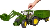 - Трактор Bruder John Deere 7R 350 с передним погрузчиком и прицепом (3155)
