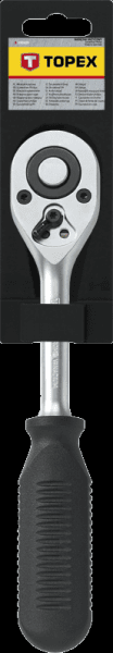 Трещотку TOPEX я использую уже несколько лет. Изделие выполнено из качественной хромированной стали, потому служит своему владельцу долго. Инструмент имеет в себе храповый механизм на двадцать четыре зубца, имеется тумблер переключения направленности оборотов. Рукоять массивная, ребристая, что препятствует скольжению инструмента в ладони, это удобно. Инструмент очень надежный и долговечный, рекомендую его.