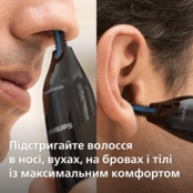 Триммер для носа Philips серии 1000 бережно удаляет волосы в носу и ушах. Новая технология PrecisionTrim и система Protective Guard обеспечивают комфортное и эффективное подравнивание без выдергивания волосков.