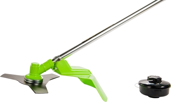 | Комплектация (возможны изменения в разных поставках) | Документация, Защитный кожух, Леска, Набор ключей, Нож, Плечевой ремень, Рукоятка, Триммер |