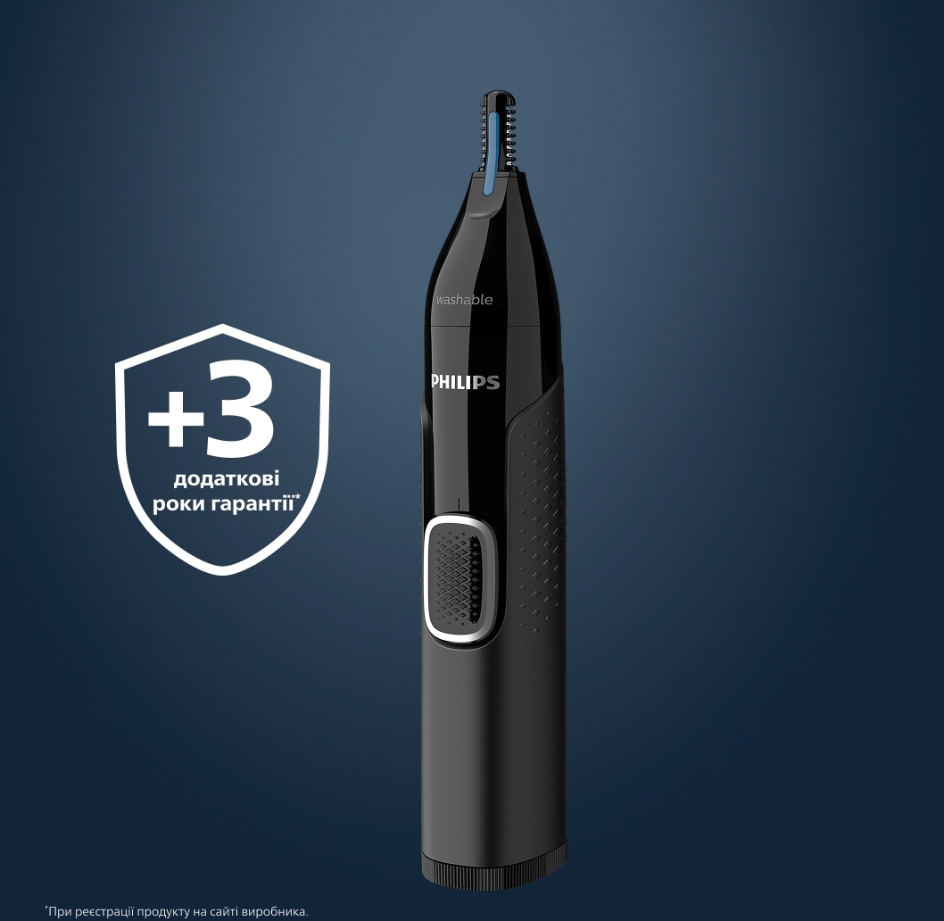 Тример компактний та ергономічний. Він не ковзає, невелика вага робить процес використання максимально комфортним. Завдяки захисному ковпачку леза не контактують безпосередньо зі шкірою, що мінімізує ризик порізів та неприємних відчуттів. Особливо сподобалася наявність двох насадок – окремо для носа та вух, а також для брів. Зміна їх відбувається швидко та легко.