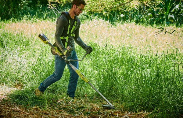 Триммер Ryobi спроектирован легким и сбалансированным, но при этом знакомым пользователям, привыкшим к бензиновым газонокосилкам и триммерам. Размещение аккумулятора сзади и прямая конструкция двигателя для лучшего баланса и распределения веса.