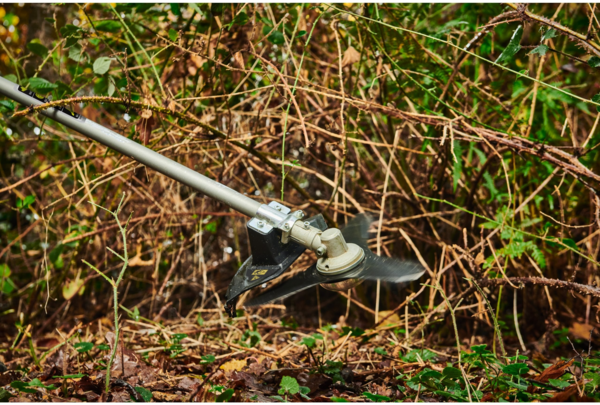 Триммер подходит для кошения жесткой травы, сорняком или поросли кустарника.