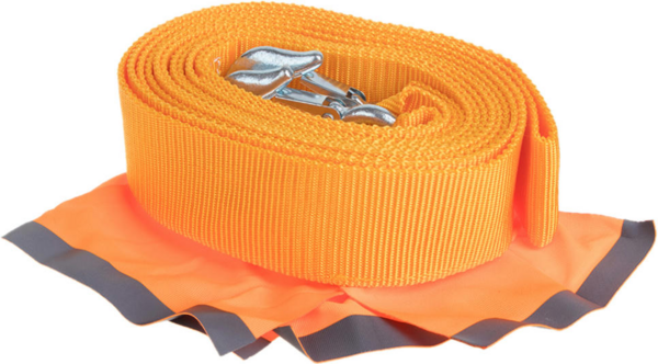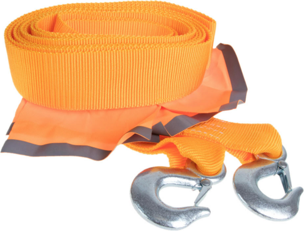 Вы путешествуете на своем автомобиле, и вдруг возникает неисправность вдали от населенных пунктов. Не вовремя выключенная магнитола, фары, устаревшая АКБ или длительное пребывание при низких температурах - все это может привести к быстрой разрядке автомобильного аккумулятора. Конечно, такие ситуации не случаются каждый день, но рано или поздно почти каждый владелец авто сталкивается с необходимостью буксировки авто. В такой ситуации буксировочный трос - самая приятная находка в багажнике Вашего автомобиля. Благодаря химическим и структурным особенностям полиэстера, из которого изготовлен буксирный трос, он обладает высокой прочностью, устойчивостью к износу, воздействию внешних факторов и химических соединений. Конструкция крюка изготовлена из цельнометаллического сплава, что также гарантирует устойчивость к износу. Фиксирующие детали качественно подгоняются друг к другу: зазора нет.