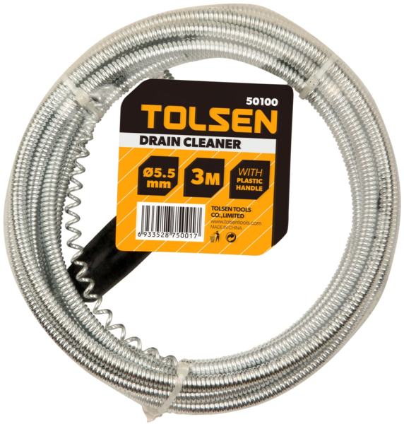 Трос спиральный Tolsen для очистки канализационных труб, 3мx5.5мм (50100)