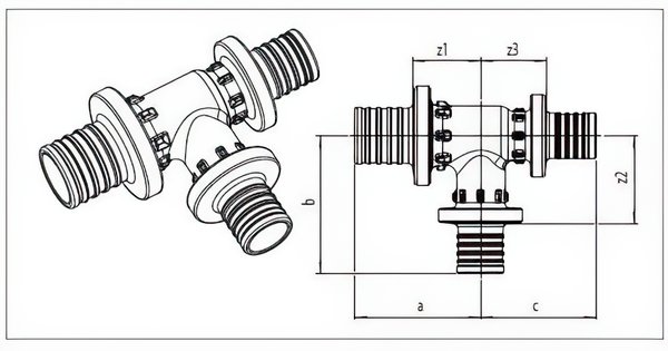 Тройник RAUTITAN PX, с уменьшенным боковым проходом с центрирующими выступами, используется для монтажа систем отопления и водоснабжения с трубами RAUTITAN stabil и RAUTITAN flex.