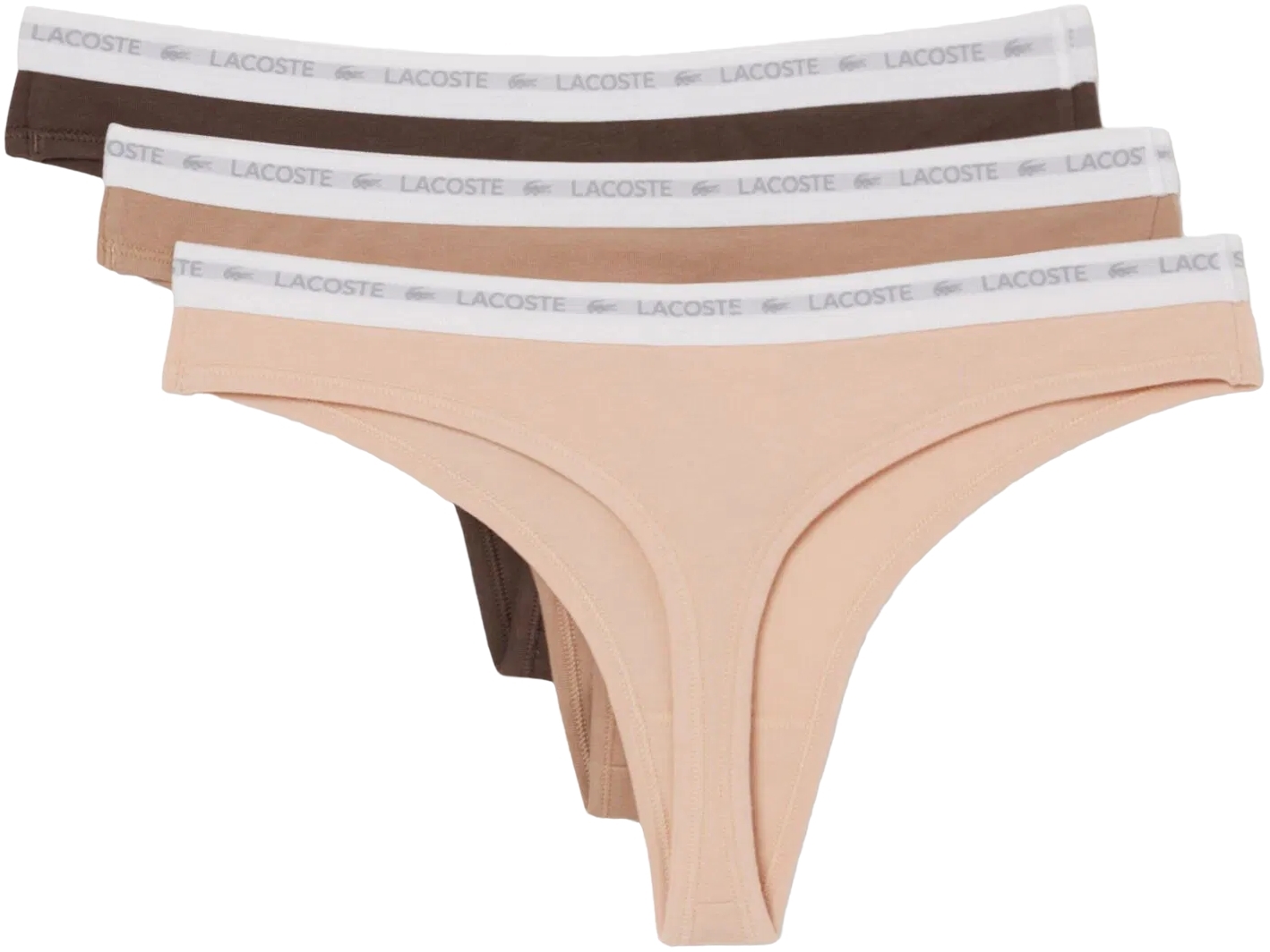 Трусы-стринги женские Lacoste 8F1341I87 M 3 шт бежевые/светло-коричневые/коричневые