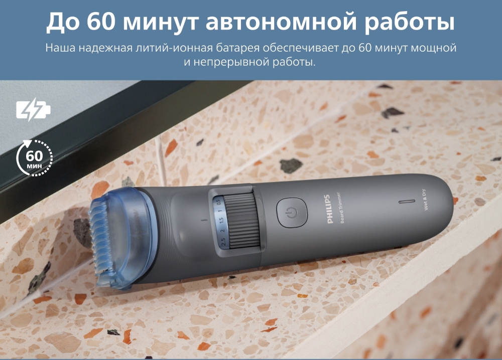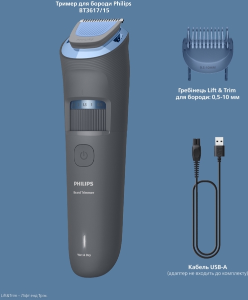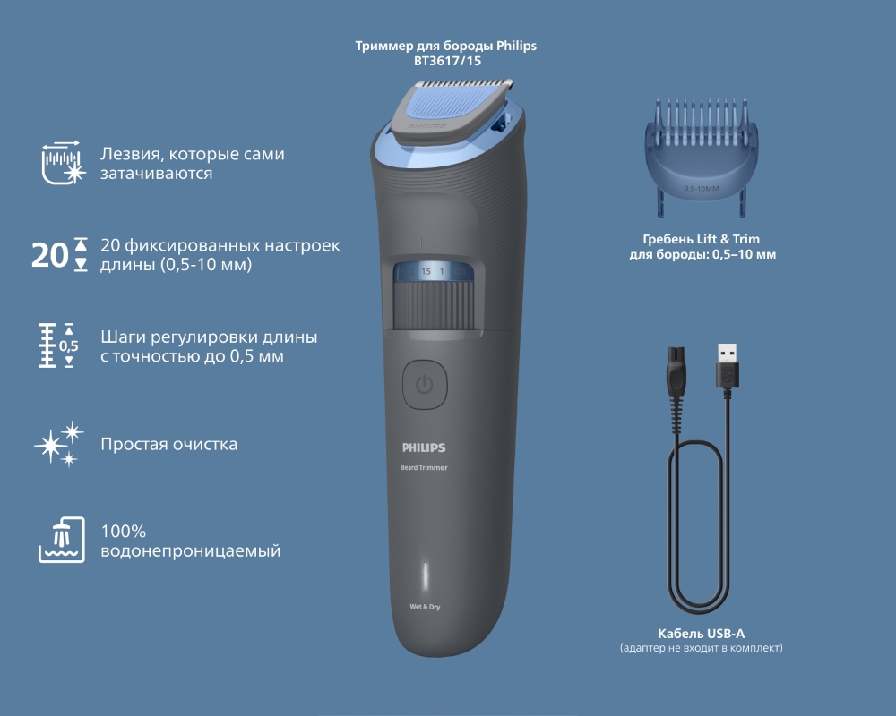 Описание Триммер Philips Series 3000 серый BT3617/15