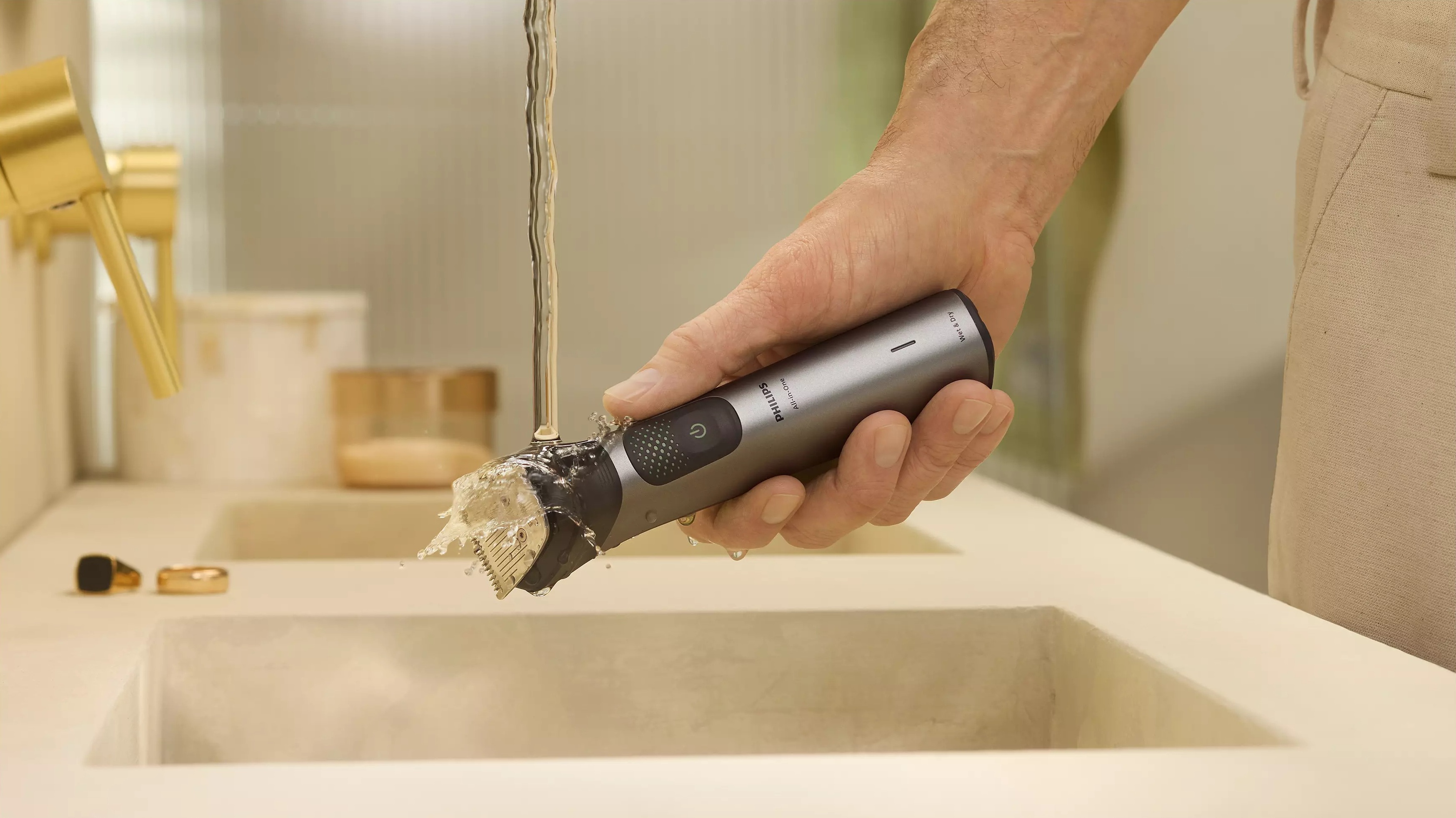 Этот универсальный триммер является водонепроницаемым, что позволяет использовать его в душе и легко очищать под краном.