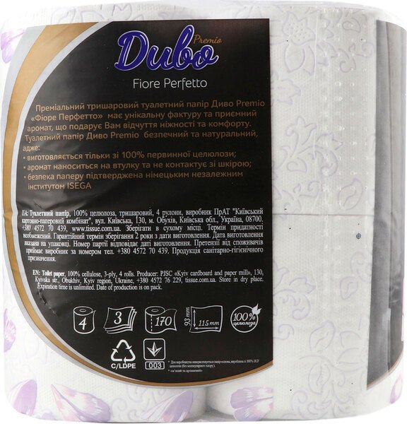 - Туалетная бумага Диво Premio Fiore Perfetto 3 слоя 4шт