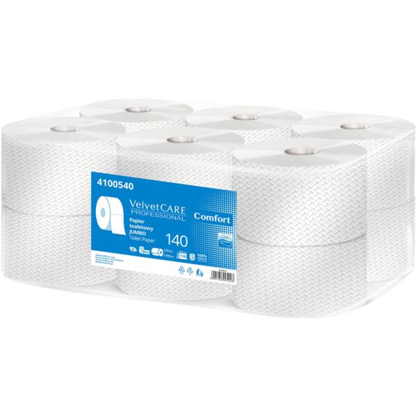Туалетная бумага Velvet Care a'12 Jumbo 140 Comfort — это профессиональный двухслойный джамбо-рулон длиной 140 метров, предназначенный для использования в общественных туалетах, офисах, гостиницах и других местах с высокой проходимостью. Два слоя чистой целлюлозы обеспечивают прочность и мягкость.