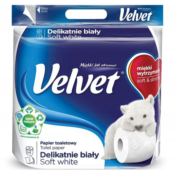 Туалетная Бумага Velvet Нежно-Белый-это три слоя мягкой салфетки связанной нежный. Каждый лист-это оптимальное сочетание прочности и бархатной мягкости бархатной бумаги.