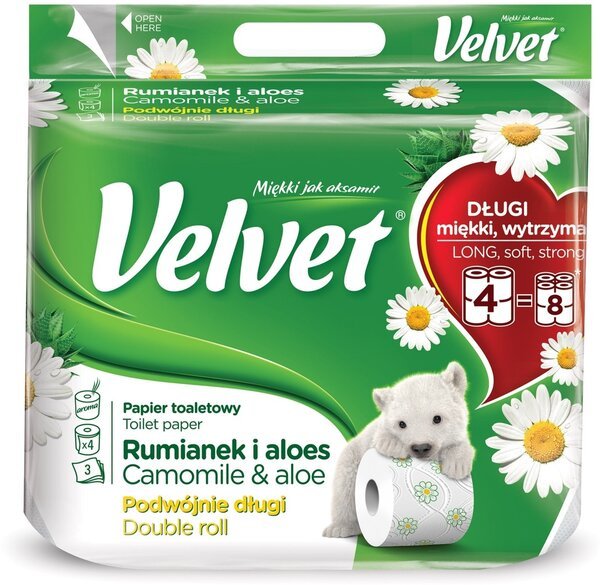 - Туалетная бумага Velvet Ромашка и алоэ, с ручкой 3 слоя 4 рулона