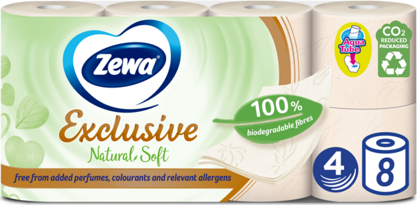 Откройте для себя Zewa Exclusive Natural Soft – мягкая гипоаллергенная бумажная продукция без красителей и ароматизаторов!