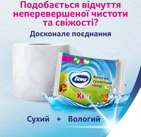 - Туалетная влажная бумага Zewa Kids moist 42 шт
