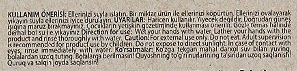 Пальмат натрия, вода, пальмовый кернелат натрия, карбонат кальция, парфюм, глицерин, хлорид натрия, пальмоядра кислота, экстракт плодов кокоса, PCA натрия, тетранатрий ЭДТА, тетранатрия этидронат, сорбат калия, бензоат натрия, бензилсалицилата, цитронелол, гераниол, гексил коричный, Cl 77891.