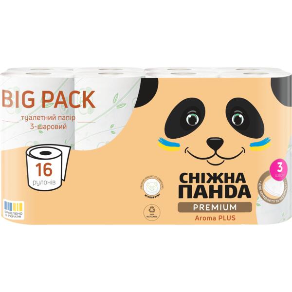 - Туалетная бумага Снежная Панда Premium Aroma Plus 3-слойная 16 шт