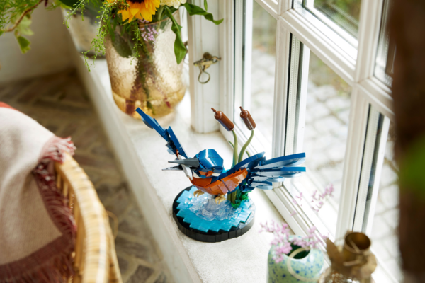 Відмотайте назад і розслабтеся, складаючи цю LEGO-композицію зимородка, який вилітає з очеретяних вод, спіймавши рибку.