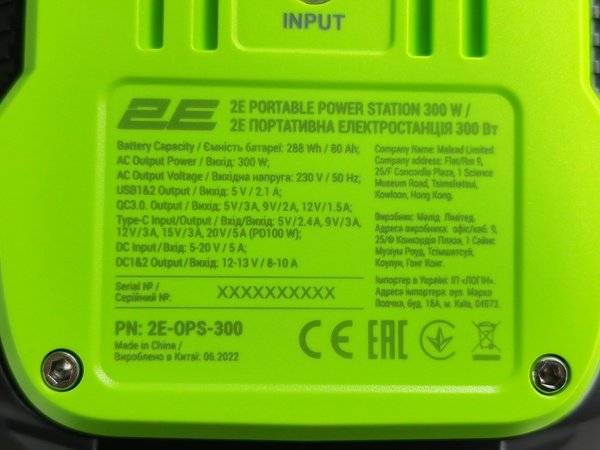 Портативна зарядна станція 2Е 300W, 288 Вт·год (2E-OPS-300)
