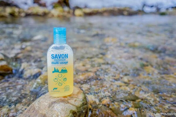 Pharmavoyage Savon Outdoor - універсальний органічний гігієнічний засіб для туризму та кемпінгу. Підходить для миття тіла і волосся, прання і чищення посуду. Можна використовувати у відкритих водоймах (озерах, річках, струмках). Однаково добре працює з прісною і солоною водою. Не шкодить навколишньому середовищу, розкладається в природі менш ніж за місяць.
