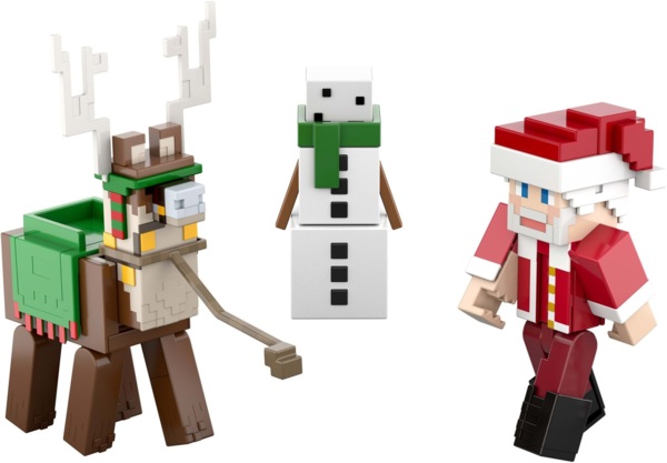 - 3 ексклюзивні фігурки (приблизно 8 см заввишки): Санта, Весела Лама та Сніговий Голем.
