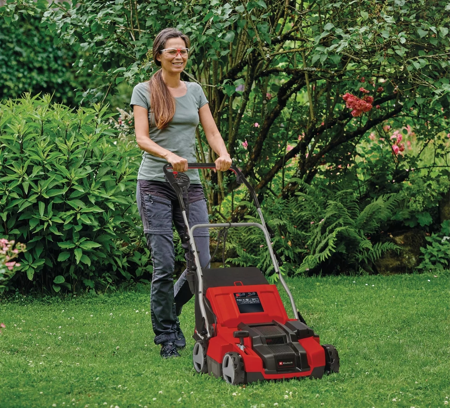 Великий ножовий вал скарифікатора Einhell надійно видаляє мох і повсть з газону. Залишки можна зібрати в кошик, що додається. Якщо робота ведеться без кошика, зрізаний матеріал розподіляється по траві для природного добрива.