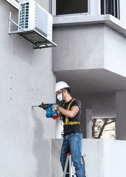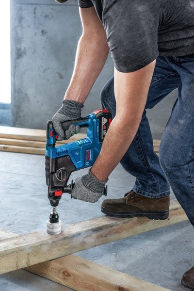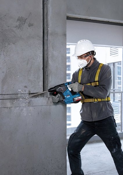 GBH 187 Professional - універсальний інструмент у категорії акумуляторних перфораторів Bosch SDS plus - ідеальний для щоденного використання. Він оснащений безщітковим двигуном і функціями KickBack Control і Vibration Control для підвищення користувацького захисту здоров'я. Він також включає в себе постійну швидкість. Дисплей HMI зручно інформує про стан батареї та інші важливі для користувача повідомлення. Його вбудований модуль підключення Bluetooth забезпечує швидке і просте підключення до Bosch Toolbox для налаштування особистих налаштувань. GBH 187 Professional призначений для свердління і довбання бетону та цегляної кладки. Він сумісний з усіма акумуляторами та зарядними пристроями Bosch 18V.