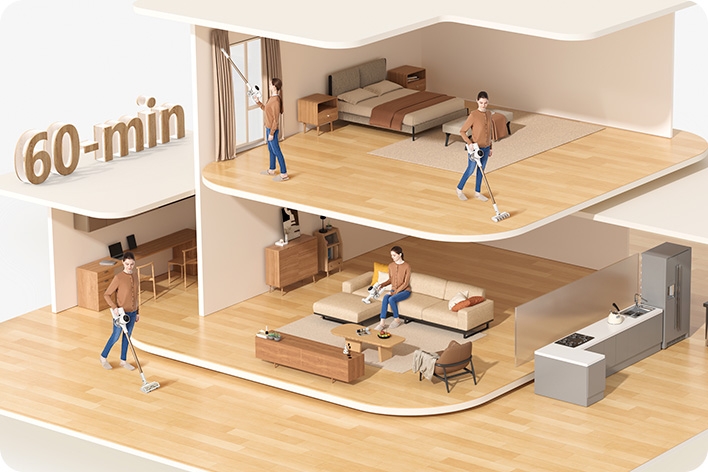 Виробник забезпечив автономність пилососа протягом 60 хвилин. Батарейний блок складається із семи осередків по 2,5 Ампера кожна. Заряд витрачається помірно, ви зможете не поспішаючи прибрати всі покриття для підлоги в будинку і ще залишиться заряд для чищення карнизів або меблів. Для заряджання вертикального пилососу Dreame R10 знадобиться близько 5 годин.