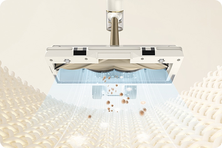 Конструкція основної щітки має вбудований електромотор для обертання щіткового валика. Таке рішення дозволяє вам більш ефективно проводити прибирання килимових покриттів, а також плоского лінолеуму, паркету або ламінату. Щетинки щітки, що обертається, мають спеціальну форму, що дозволяє їм легше захоплювати частинки сміття для розміщення їх в контейнер для пилу. А зібране волосся не намотуватиметься на щітку через наявність спеціальної знімної системи з перегородками.