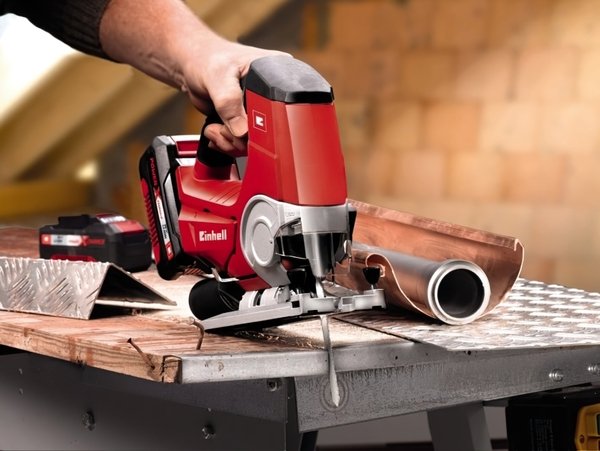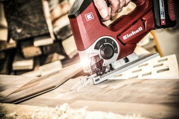Новий лобзик лінійки Power X-Change system Einhell TE-JS 18 Li SoloExpert plus для криволінійного і прямолінійного розпилу, короткого пропилу і розпилювання таких матеріалів як дерево, залізо, кольоровий метал і пластмаса за умови використання відповідного пиляльного полотна. Лобзик Einhell TE-JS 18 Li Solo дозволяє вирішити найрізноманітніші завдання як на роботі, так і вдома або дачі. Наявність регульованою алюминевой підошви з пластиковим покриттям, електронного контролю швидкості з попереднім набором частоти обертання, маркерів із зазначенням лінії різу, режиму сдува стружки, Led підсвічування і ергономічний дизайн роблять роботу з лобзиком Einhell TE-JS 18 Li Solo легкою і зручною. Заміна пильних полотен здійснюється без застосування будь-яких інструментів. Інструмент поставляється без акумулятора і зарядного пристрою, але він може бути приведений в дію за допомогою Power X-Change акумулятора.