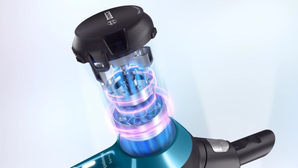 Акумулятор, який входить в комплект та забезпечує роботу пилососа, легко знімається та встановлюється всього одним натисканням, без додаткових інструментів.