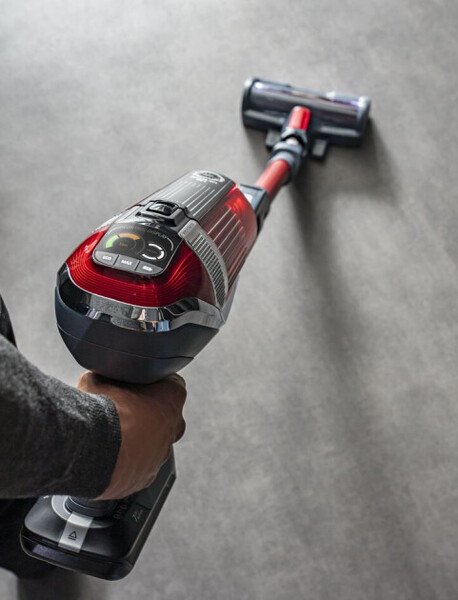 Завжди стежте за своєю потужністю і автономністю: контрольний дисплей в режимі реального часу ділиться інформацією про час роботи і потужність. Це дає ідеальний баланс для оптимізації сеансів прибирання. Велика автономність до 45 хвилин на максимальній потужності для прибирання килимів, вовни тварин і крупного сміття. Тубро режим для особливо важких завдань.