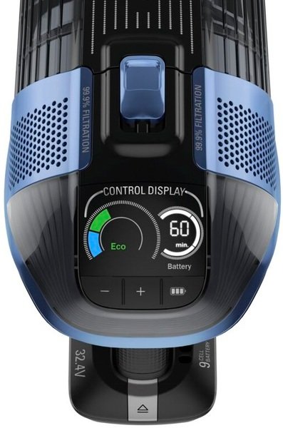 Безкомпромісна ефективність, завдяки новітнім технологіям Rowenta: цифровий двигун потужністю 200 Air Watts, потужна батарея 32,4 В, для досягнення автономної роботи 1 год 10 хвилин. Прибирання буде в задоволення, завдяки унікальній комбінації високотехнологічних рішень: технологія Flex, цифровий дисплей, позиція Stop Go, LED підсвічування та інше. За допомогою розумної електронної системи, яка автоматично регулює аеродинамічну силу, пилосос сам оптимізує потік всмоктування. Ця технологія забезпечує максимальну потужність всмоктування 200 AW для якісного прибирання по всьому будинку. Завдяки 9-елементній батареї (32,4 Вт) досягається до 70 хвилин роботи при використанні пилососа в ЕКО режимі. Ідеально, щоб пропилососити ваш будинок за один раз. Знімна батарея легко і швидко заряджається за 3 години.