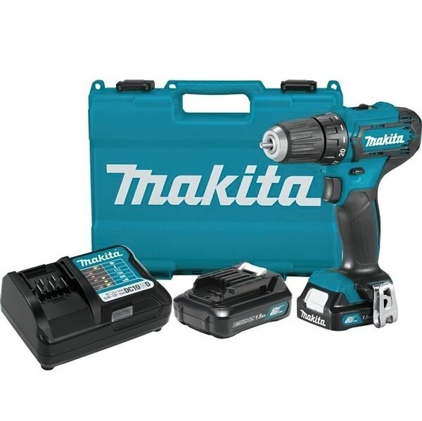 Шуруповерт поставляється з двома акумуляторами ємністю 1,5 А/ч, зарядним пристроєм DC10WC, кейсом для транспортування і зберігання.
