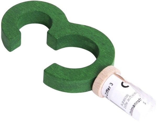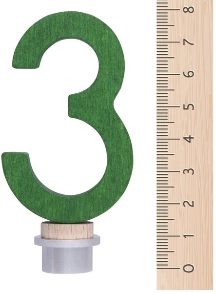 Дерев'яна цифра 3 – оригінальний елемент декору до Дня народження. Виріб виготовлено з екологічно чистих матеріалів, з використанням нетоксичних фарб. Розмір цифри – 8 x 4, 5 см, колір – зелений. Дерев'яна цифра призначена для використання з свічниками і іншими елементами декору німецького виробника іграшок nic. Святковий торт придбає неповторний вигляд, якщо прикрасити його дерев'яними виробами nic.