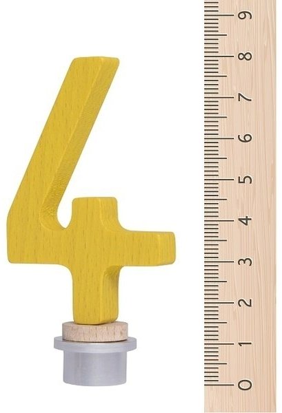 Елемент декору німецького виробника іграшок nic у вигляді дерев'яної жовтої цифри 4 допоможе додати святу оригінальності та неповторності. Цифру потрібно використовувати разом з підсвічниками, свічками для торта nic, а також іншими цифрами. Розмір цифри - 8 x 4,5 см, колір - жовтий. Для виготовлення виробу використовувалися нетоксичні фарби та безпечний матеріал (дерево).