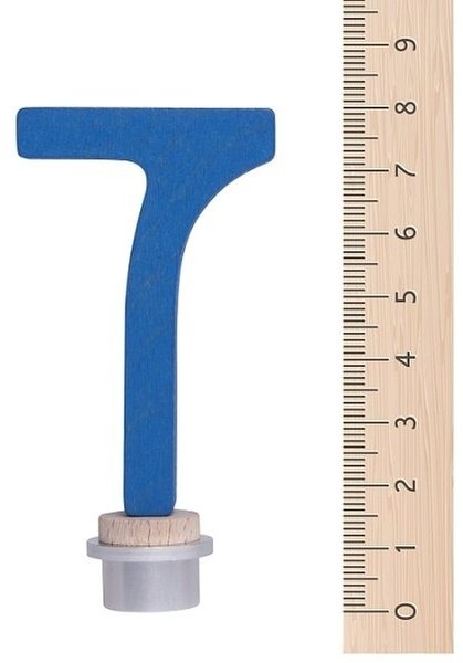 Цифра 7 німецького виробника іграшок nic призначена для прикраси святкового торта. Виріб – оригінальний елемент декору. Розмір цифри – 8 x 4, 5 см, колір – синій. Цифра виконана з безпечного матеріалу – деревини, для нанесення кольору використовувалися нетоксичні фарби. Виріб необхідно використовувати разом з підсвічниками, свічками для торта від бренду nic, а також іншими цифрами і елементами декору цього ж бренду.