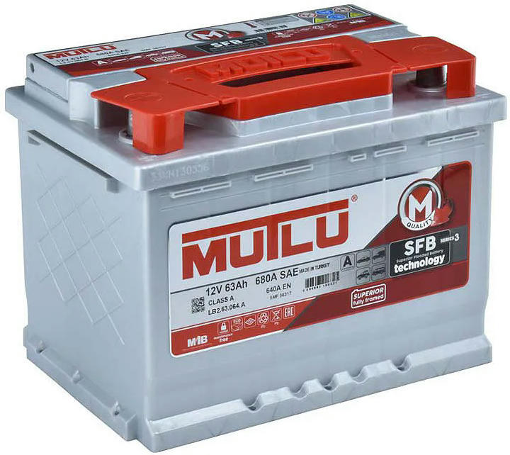 Автомобільний акумулятор Mutlu 6СТ-63Ah (LB2.63.064.A) — надійна та високоякісна акумуляторна батарея, розроблена для впевненого запуску двигуна та стабільного живлення електрообладнання автомобіля в будь-яких умовах експлуатації. Модель виготовлена за технологією SFB із решіткою зі сплаву кальцію, що забезпечує високу пускову потужність, тривалий термін служби та стійкість до вібрацій і температурних коливань. Герметична конструкція не потребує обслуговування, а спеціальна лабіринтна кришка запобігає витоку електроліту, підвищуючи безпеку експлуатації. Активна речовина батареї гарантує стабільну роботу всіх електричних систем навіть при інтенсивних навантаженнях, забезпечуючи надійність та спокій для водія.