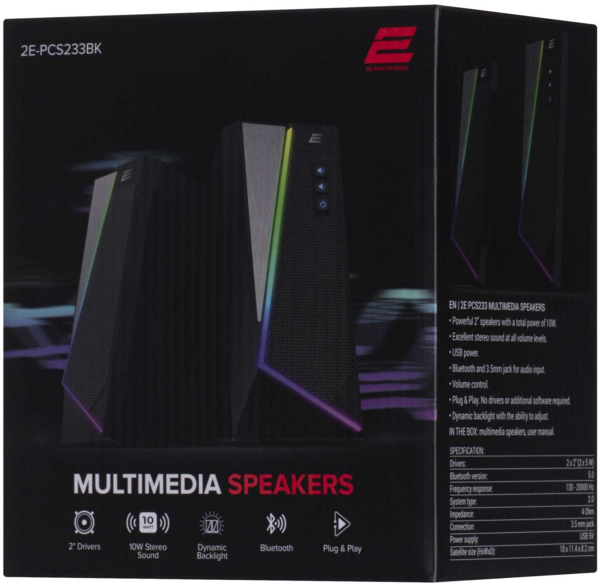 Акустична система 2E PCS233 RGB, 2.0, USB, Black (2E-PCS233BK)