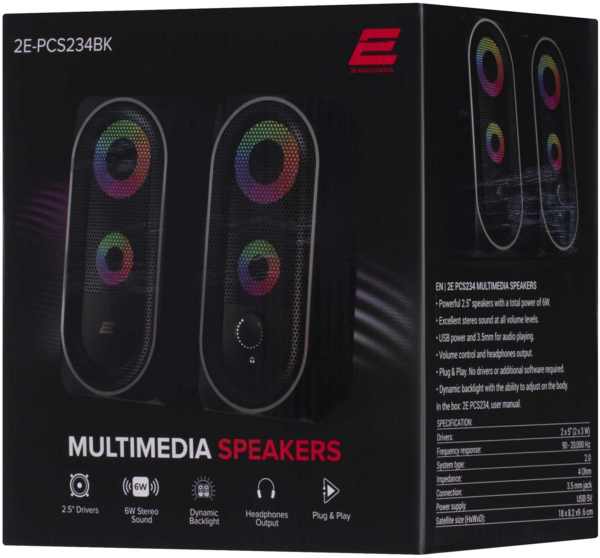 Акустична система 2E PCS234 RGB, 2.0, USB, Black (2E-PCS234BK)