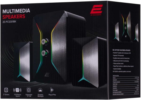 Акустична система 2E PCS301 RGB, 2.1, USB, Black (2E-PCS301BK)