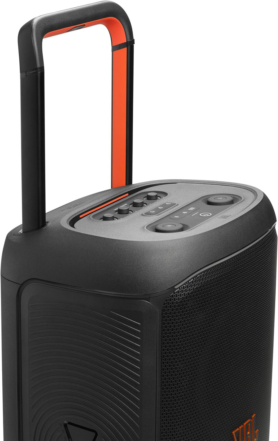 Куди б ви не пішли, JBL PartyBox 520 завжди готова до роботи завдяки ручці, яка може висуватися, і колесам для плавного переміщення.