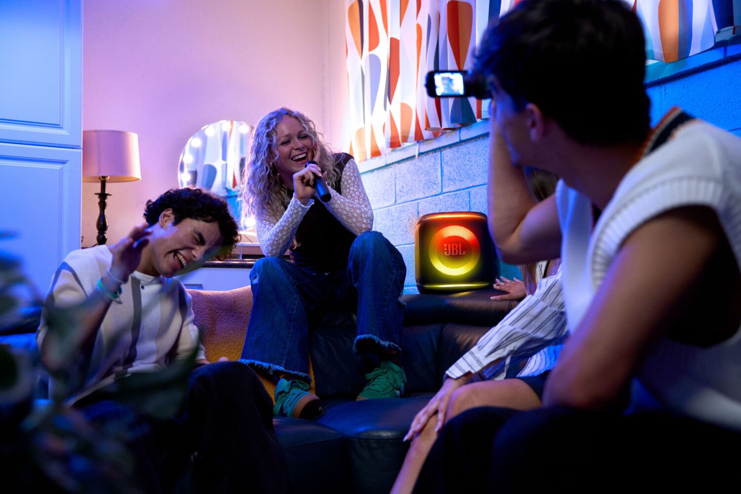 Поп-балади, повільні пісні та все, що між ними - звук JBL робить ваш плейлист яскравим. Потужність відчувається всім тілом, коли купольні твітери та потужні басові елементи створюють неймовірні верхні та нижні частоти. Хочете ще більше збільшити гучність? Музика все одно звучатиме кришталево чисто, адже підсилювач AI Sound Boost, що працює на базі штучного інтелекту, створює потужніший звук із меншою кількістю спотворень.
