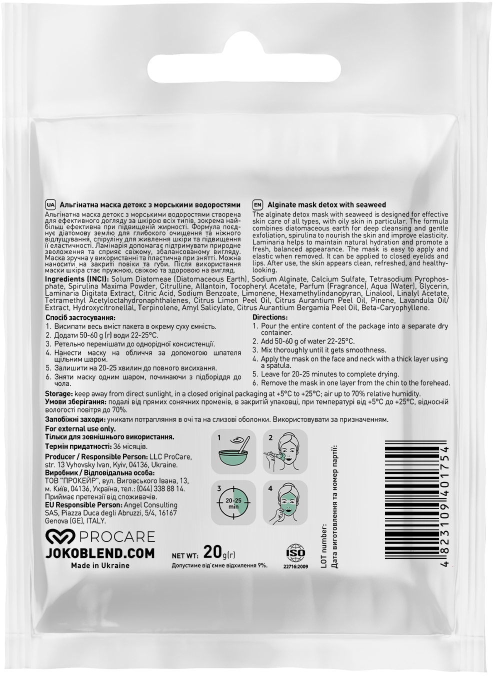 - Альгінатна маска Joko Blend Детокс з морських водоростей 20 г
