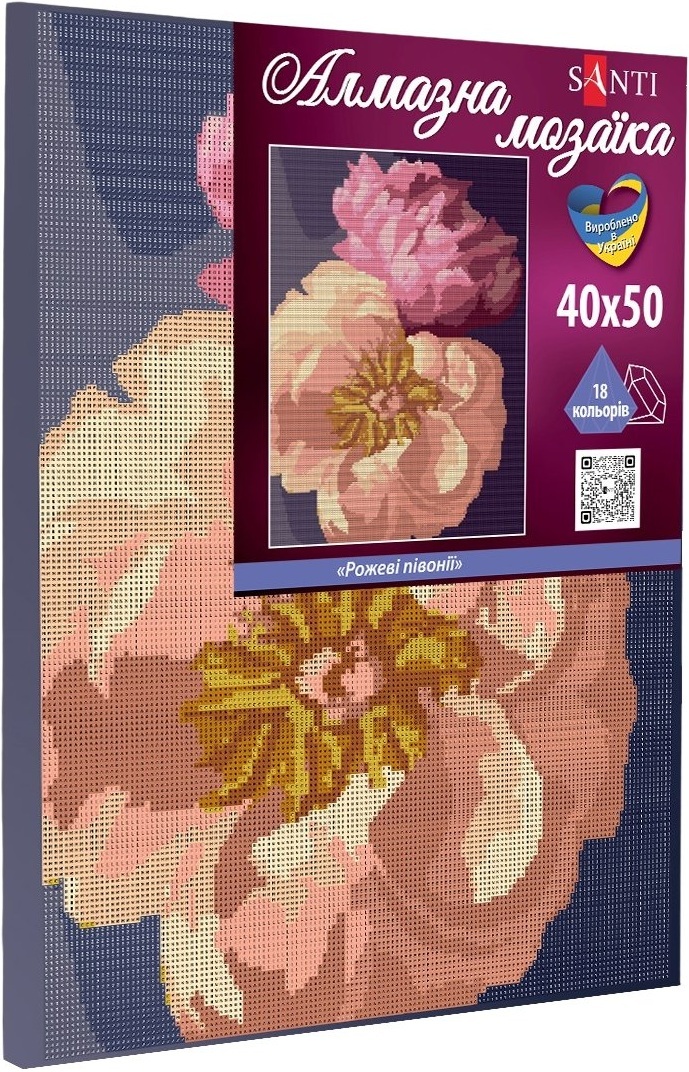 - Алмазна мозаїка Santi Рожеві півонії, 40*50см на підрамнику (954696)