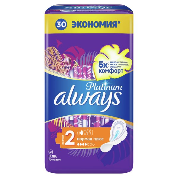 - Гігієнічні прокладки Always Platinum Normal Plus (Розмір 2) 30 шт