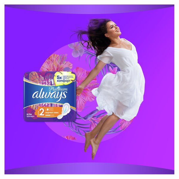 Рекомендовано використовувати прокладки Always Platinum Normal Plus (Розмір 2) з крильцями для використання вдень при легких та помірних менструаціях.
